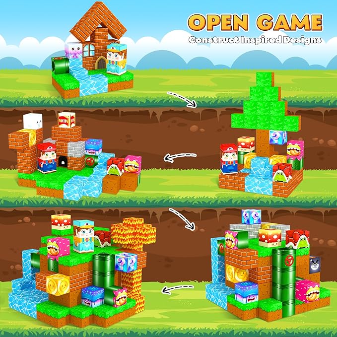 - TOYS & GAMES - This open-ended toy brings virtual movie games into children's real life through toys. Children can use their imagination, role-play, build their own world, and experience adventure games from 2D to 3D. Highly recommend this building toy for children aged 3 and above.