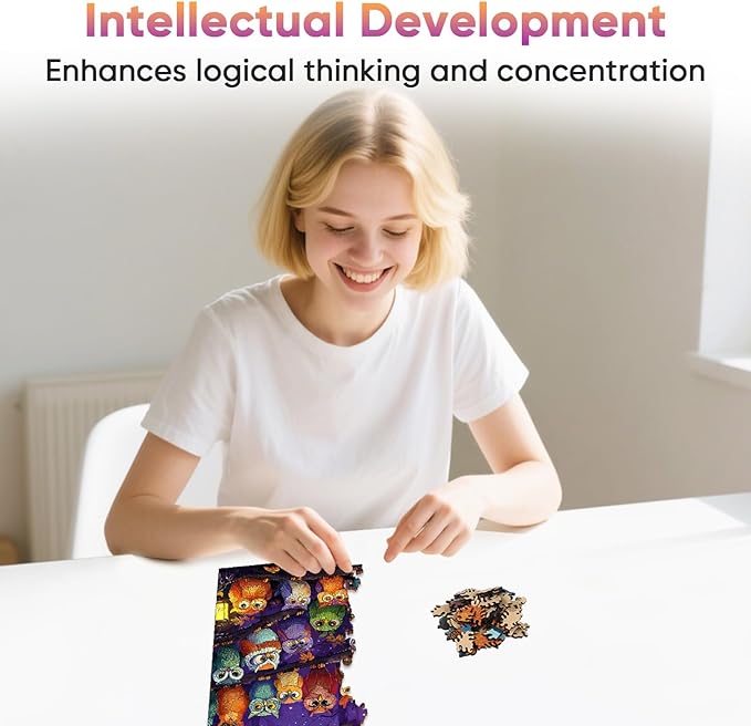 Wooden Puzzles for Adults, Halloween Owl Family Puzzles 500 Pieces, Unique Shaped Jigsaw Puzzles for Adults and Kids, Fun Challenge Family Game 18.9'' x 14.2''