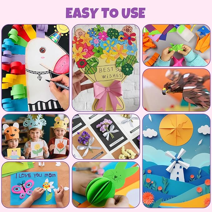 - 【Versatile Crafting Paper】:Perfect for creating card toppers, cake decor, invitations, gift tags, party bunting, origami, scrapbooking, banners, and rolled paper flowers. Its adaptability unlocks endless creative projects—from festive decorations to personalized gifts.