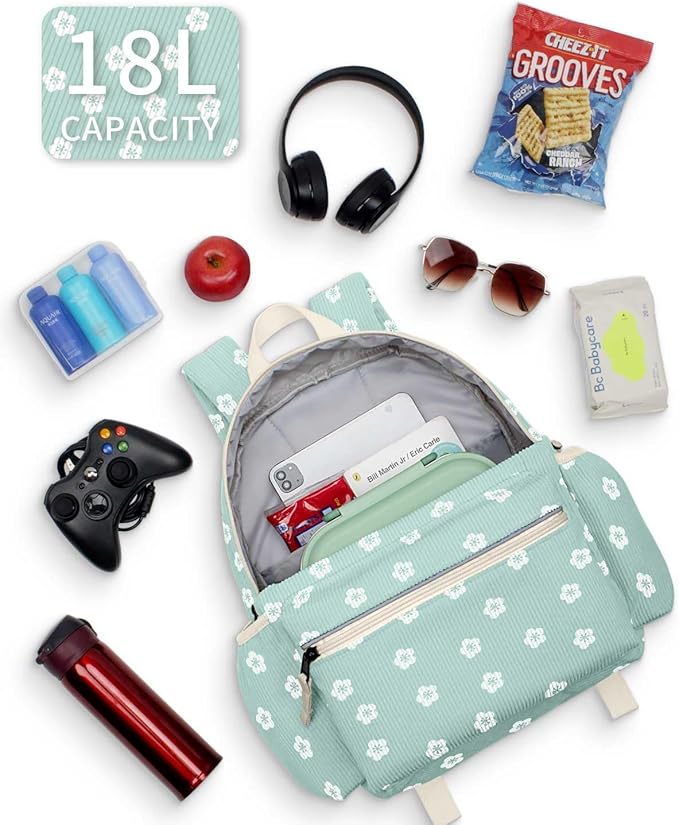 Corduroy Kids Backpack for Girls 6-10: Girls Backpacks for Elementary Kindergarten 15” H Fit Folder