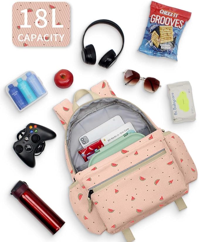 Corduroy Kids Backpack for Girls 6-10: Girls Backpacks for Elementary Kindergarten 15” H Fit Folder