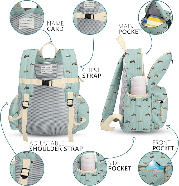 Corduroy Kids Backpack for Boys 6-10: Boys Backpacks for Elementary Kindergarten 15” H Fit Folder