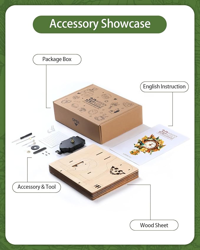 - ๐น Eco-Friendly and Hassle-Free Assembly:Crafted from premium eco-friendly basswood, each piece in these wooden puzzles is finely polished for smooth, safe edges. The interlocking design requires no glue, ensuring a clean assembly process. The finished clock operates on 1 AA battery (not included).