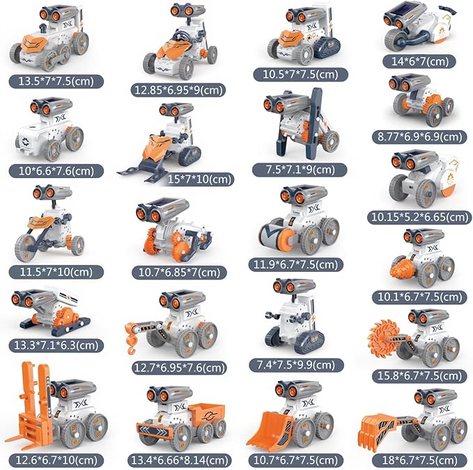 - 21-in-1 Latest Toy Robot & Upgrade Design: 2025 innovated and designed and upgraded STEM solar robots toys kits, the following optimization improvements: 21 new concept shapes toy robot, enlarged solar panel area, large-size accessories and deepening the optimization and improvement of the installation hole, accurate track design, more firm, solve the problem that accessories are easy to fall off