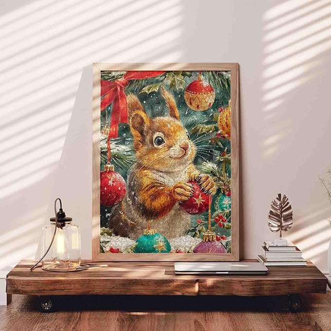 Christmas Eve 1000 Piece Jigsaw Puzzles for Adults Squirrel Playing with Xmas Balls Painting Jigsaw Puzzle 1000 Animal/Wildlife Puzzles 20''x27”inch DIY Craft Puzzle Art Wall Decor Family Challenging