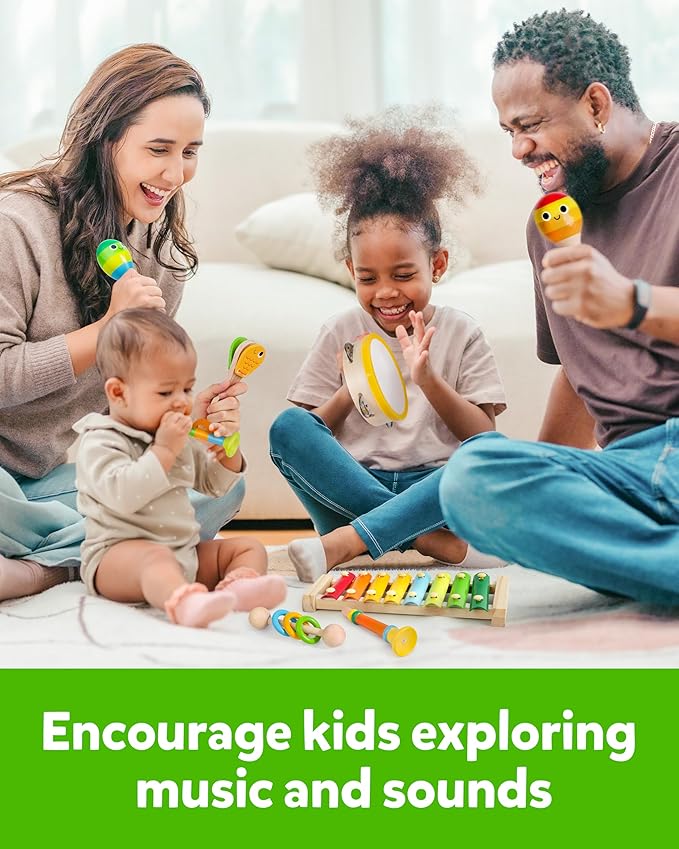 - Bright Color Wooden Instruments: This wooden musical instruments set features colorful design and high-quality wooden elements, a perfect set of inspired musical instruments to develop your child's musical sensitivity and enhance the relationships between parent and children. Best musical instruments for toddlers