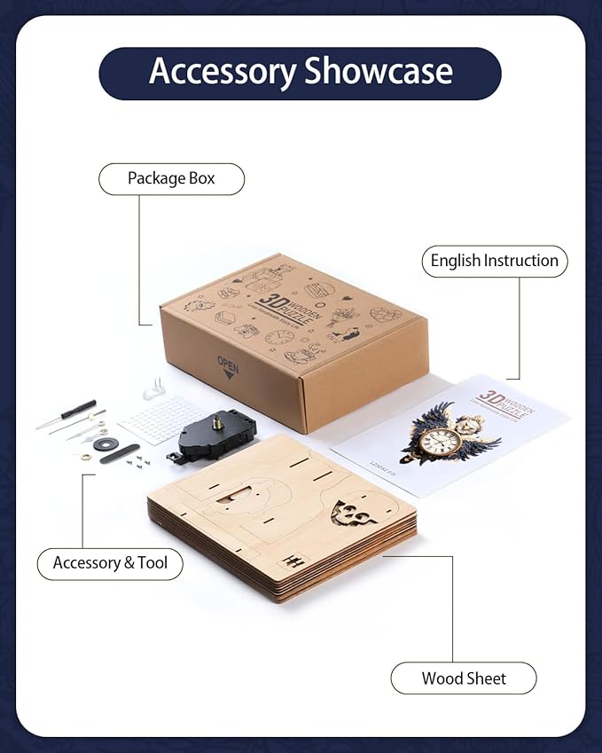 - ๐น An Exceptional Gift Choice:The 3D wooden puzzles come in elegant packaging, making them a thoughtful gift for craft lovers or those who appreciate unique home decor. Perfect for birthdays, holidays, or special occasions, this eagle clock sparks creativity and fosters parent-child bonding. Recommended for ages 14+, itโs a rewarding project to complete together.