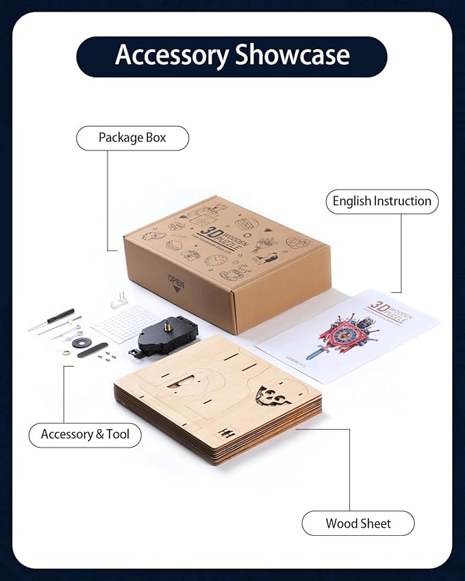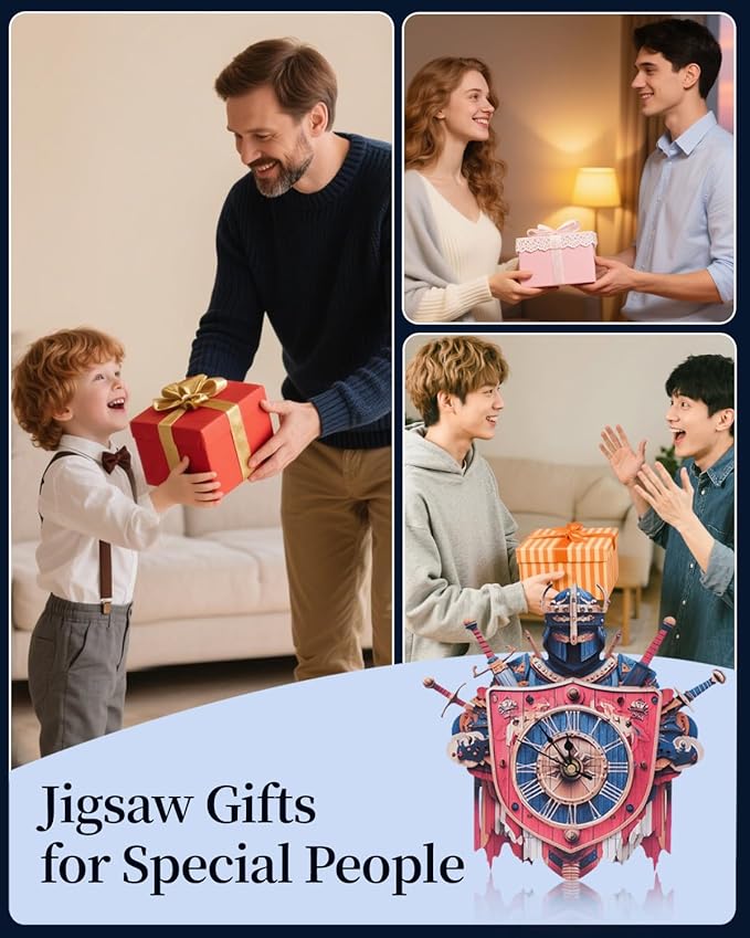 - Dual Delight of Function and Aesthetics:Once assembled, these wooden puzzles for adults transform into both a stunning art piece and a precise timekeeping clock. The Roman numeral dial complements the knight armor details, adding classic charm to studies, living rooms, or offices