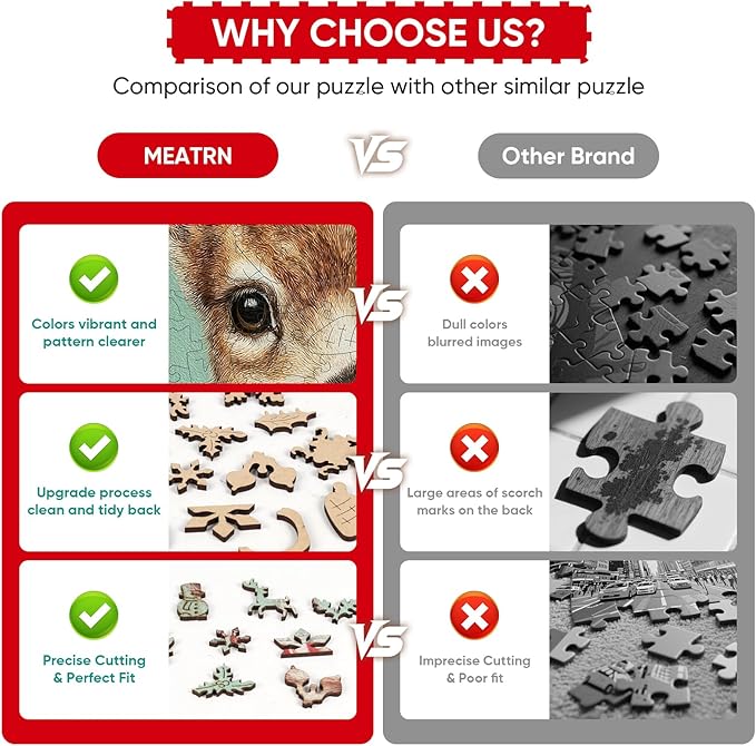 - 【Premium Wood & Lasting Colors】Crafted from high-quality natural wood with high-definition printing, this home decor wooden puzzle is built to last. The vivid colors won’t fade, letting you preserve and display your completed framed deer puzzle as festive holiday décor. Buy with confidence! If you are not satisfied with our unique shaped puzzles, or have any defect or damage, please contact us, we will provide the best quality service
