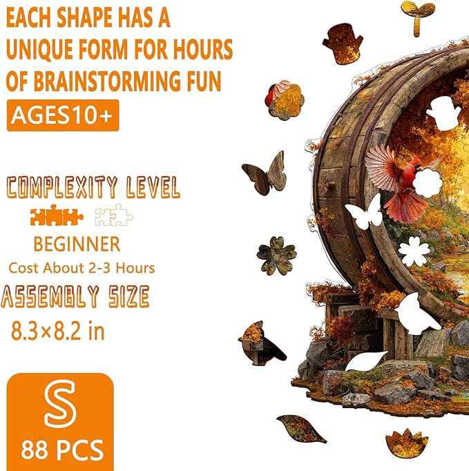 - ๐Scenery in Barrel Puzzle Set - Do you want to enjoy the fun of puzzles? Our wooden jigsaw puzzle is a great choice. This puzzle shows a beautiful corner of the huge barrel. There are two cardinals playing around. The wood puzzle is cut into unique shapes to give you an interesting experience. Come and find the special beauty in wooden toys!