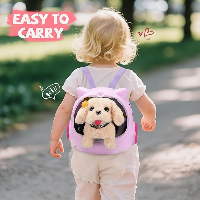 - Easy To Carry & Outdoor Play: Compared to other robot puppy toys, the backpack we provide is easier to carry. You can put your dog in your backpack and carry it with you during outdoor picnics or travel. At the same time, we also have a dog leash that can be put on a dog's collar and will automatically walk with the cute dog's bark, allowing children to simulate the scene of walking the dog. It's so fun! Ideals 3 4 5 6 year old girl kids birthday gifts