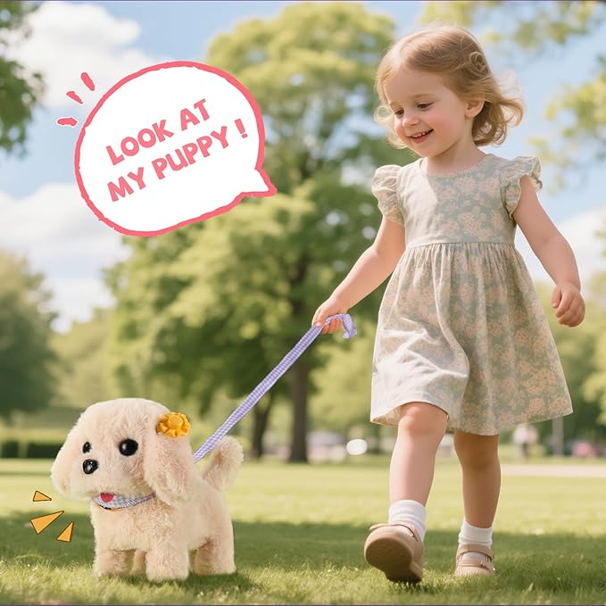 - Interactive Dogs that Walk and Bark: Just put in the battery and turn on the power, and the cute electric plush animal dog will walk, bark, wag its tail, and nod like a real dog. And when you pat it on the head, it will also make a cute and interesting sound. By taking care of puppies, children can experience various pet activities, such as feeding, bathing, combing and trimming fur, thereby learning life skills and even overcoming their fear of dogs in life. Great realistic robot puppy toys for kids girls boys