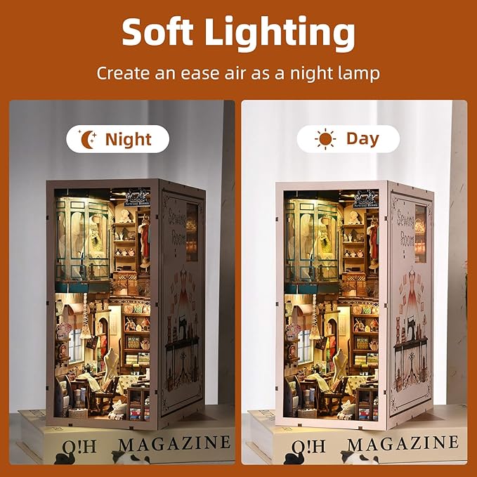 - 【DIY Bookshelf Insert Decor & Perfect Gift Choice】Light up your bookshelf with this charming Sewing Room 3D wooden puzzle. The built-in LED light creates a warm atmosphere and enhances your home décor. This is not only a fun DIY project, but also a unique and thoughtful gift for sewing lovers and craft lovers, suitable for birthdays, holidays, or any special occasion.