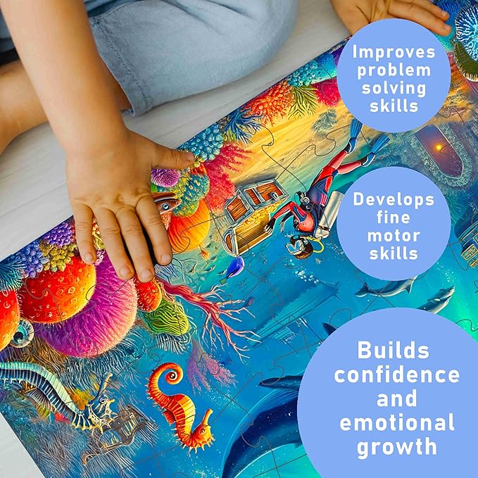 - OCEAN JIGSAW PUZZLE FOR KIDS: A fun and colorful Sealife design that will spark the imagination of kids.