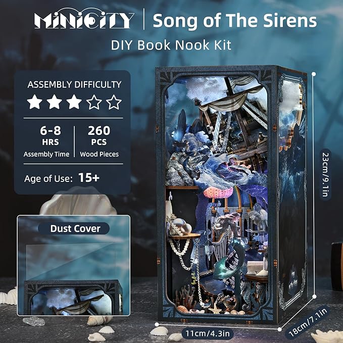 Book Nook Kit, DIY Miniature Dollhouse Kit 3D Puzzles for Adults Tiny House Mini Home Craft Bookshelf Nook Puzzle Book Decor Gifts for Teenagers Book Lovers (Sirens Song)