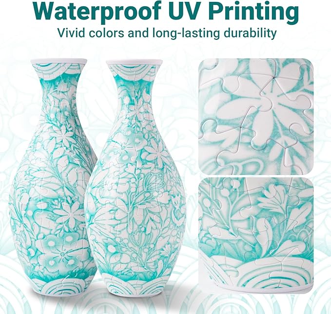 - Challenging 3D Puzzle - The vivid and realistic patterns on this puzzle vase are visually striking and sure to add a touch of personality to any room. In addition, the back of each puzzle piece is engraved with a unique letter sequence number. If the puzzle pieces get mixed up, you can compare the patterns with the sequence numbers on the back to rearrange the pieces and complete the puzzle.