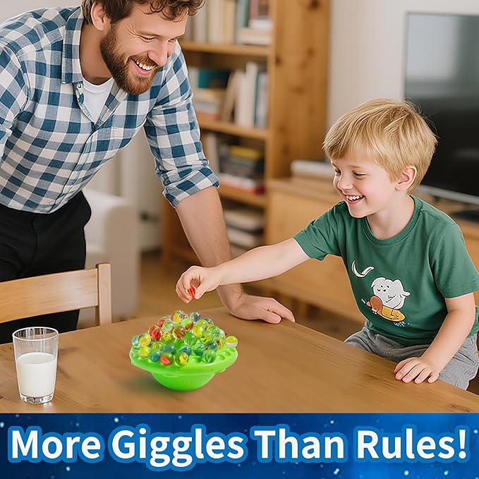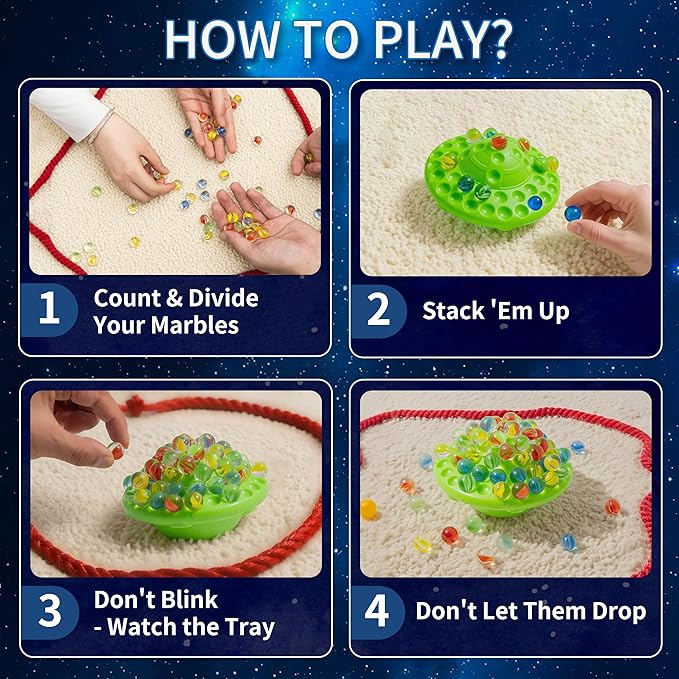 UFO Marble Balance Game, 60 Colorful Marbles Toy for Kids Family Stacking Challenge, Party Game with Storage Case for Children Over 96 Months