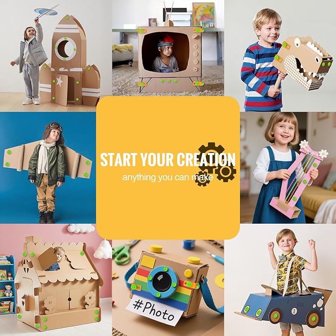 - 【STEM Building Tool for Ages 5+】Kids cardboard cutter set is a construction toy for boys and girls which improves their STEM (science, technology, engineering, and math) skills. It's a perfect creative toy for more children to play together so that they have the opportunity to cooperate with others and learn about teamwork.Kids would focus their thoughts on creating the perfect cardboard, which helps to improve imagination and creativity, enhance their ability of problem-solving.