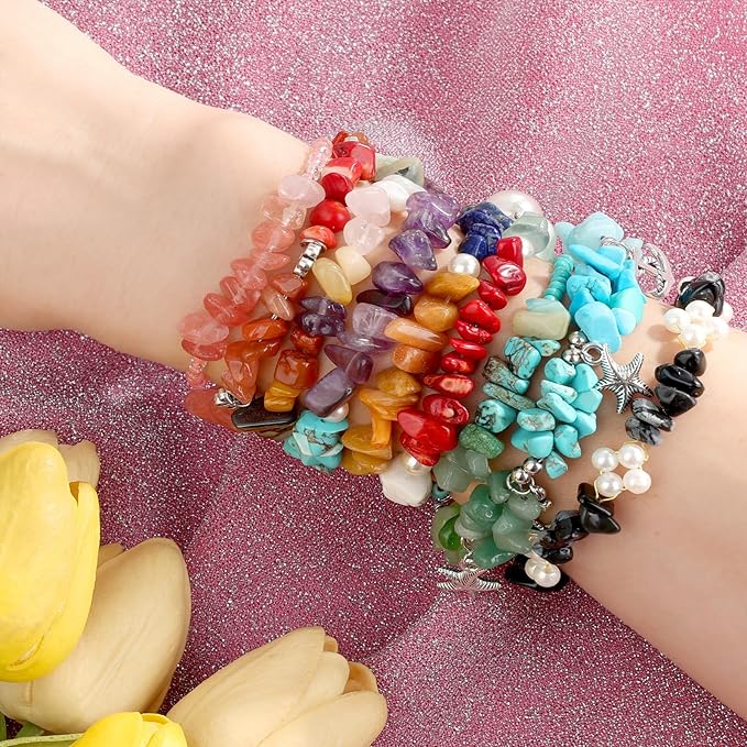 - 【Jewelry Making Complete Kit】Our crystal stone beads for jewelry making kit comes with 24 colors gemstone crystal beads, 2 rolls of jewelry wire, 1 rolls of elastic thread, 1 roll of necklace chain, 100pcs Tibetan silver charms, 1 flat nose jewelry pliers, 50pcs jump rings, 10pcs lobster clasp, 50pcs earring hooks, 50pcs T-head pins, 50pcs 9-head pins, 100 earring backs and 1 jump ring opener for bracelet, necklace, earrings and ring jewelry making