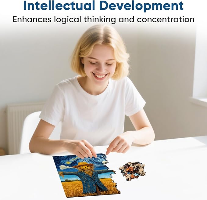 Wooden Puzzles for Adults, Scarecrow and Farmland Puzzles 500 Pieces, Unique Shaped Jigsaw Puzzles for Adults and Kids, Birthday Gifts Fun Challenge Family Game 14.2'' x 18.9''
