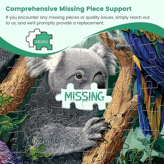 - What You Will Get: This Koalas and Parrots puzzle for adults includes 300 precision-cut pieces, a drawstring storage bag, and a full-size reference poster — all designed for a smooth, enjoyable, and stress-free assembly experience