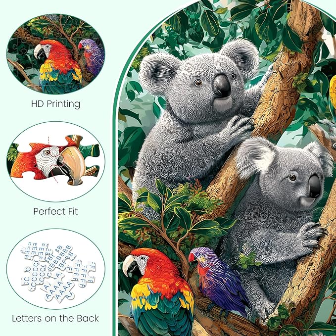 - Distinctive Decor: This 300 piece jigsaw puzzles captures koalas and parrots in a lush forest scene. The completed 20.5" x 15" artwork transforms into stunning, ready-to-frame decor — ideal for adding charm to a living room