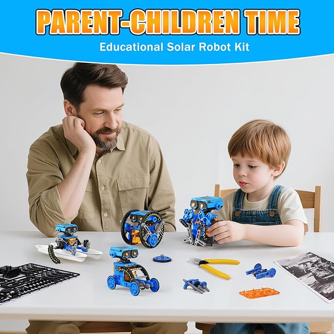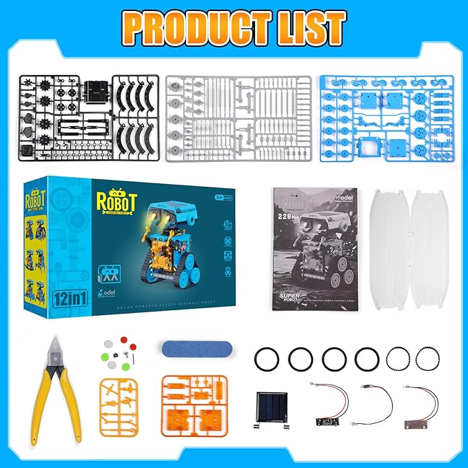 - Perfect Robot Toys for Kids 8-12 - The solar robot kit will be packaged in a delicate gift box. These children's toys are ideal educational gifts for Christmas, Holloween, birthday, New Year, Children's Day, holiday, and weekend events. Parents and children enjoy family time and explore the world of science together.It brings kids together for screen-free fun and learning STEM projects for kids ages 8-13.