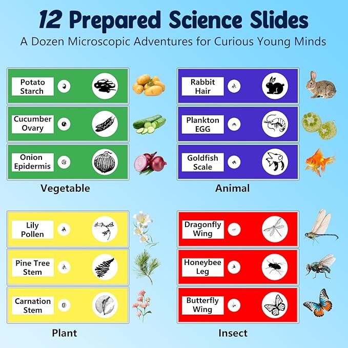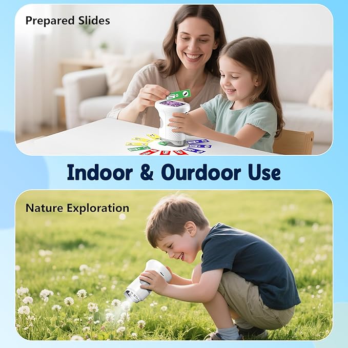- Perfect Gift for Young Scientists: Designed as a fun and educational STEM toy for ages 5-7 8-12, this microscope for kids combines learning with play. Whether for birthdays, holidays, or special occasions, it’s an inspiring gift that helps boys and girls explore science while having fun