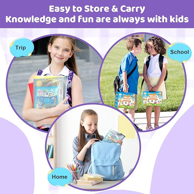 - Designed for 3-8 Year Olds: Magic Grooved Writing Practice Set includes 7 grooved writing books, 1 watercolor book, 2 disappearing ink pens with 20 refills, 1 watercolor pen, 2 silicone grips, 500 stickers, and a mesh storage bag