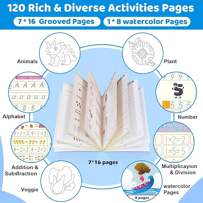 - Perfect gift for kid-- Kindergarten workbooks: This 8-in-1 grooved writing books for kids set combines writing, math basics, and imaginative drawing to enrich quiet activities and reduce screen time. It's the perfect present for Christmas, New Year, birthdays, or back-to-school