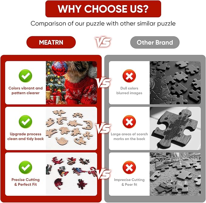 - 【Relax, Learn & Enjoy Together】More than just festive fun—this stress relief wooden puzzle sharpens the mind while soothing the soul. Assembling Christmas cat portrait helps improve hand-eye coordination, logical thinking, and patience. A delightful indoor activity puzzles for dog lovers, adults, kids, and families to bond, learn, and relax during the holiday, rainy day or while traveling