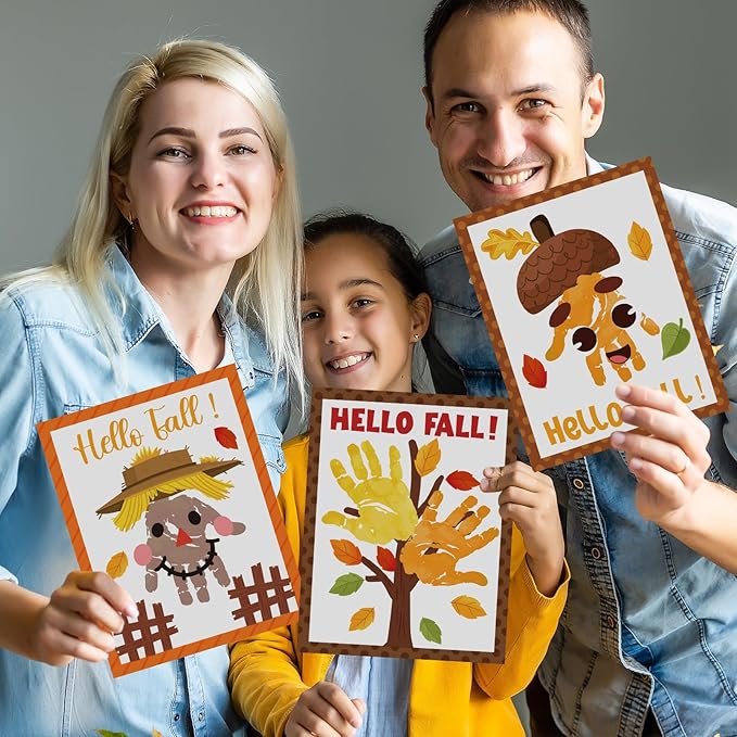 - DIY Handprint Craft Kits: Includes 24 autumn-themed greeting cards, 24 sheets of stickers in 8 different designs, 1 orange ribbon,and 3 ink pads. With sufficient quantity and rich variety, this kit meets various DIY needs. Suitable for all ages to handcraft meaningful keepsake gifts while enjoying a fun and engaging creative experience