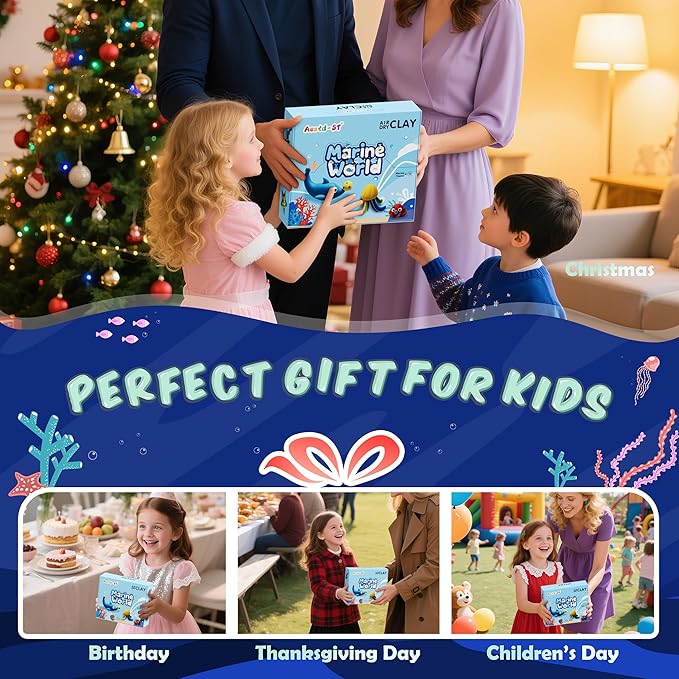 - Creative Fun & Kids Gift: This air dry clay kit features vibrant, kid-friendly packaging with playful animal designs—Suitable for boys, girls, and teens. A thoughtful present blending artistic crafting, education, and family fun at birthdays, Christmas, parties, and seasonal celebrations!