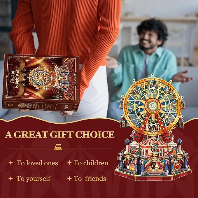 - Century Ferris Wheel: Intricately crafted wooden puzzle with glowing miniature cosmos inside. Celestial constellations dance beside musical notes on its ornate frame, casting warm starlight through delicate cutouts