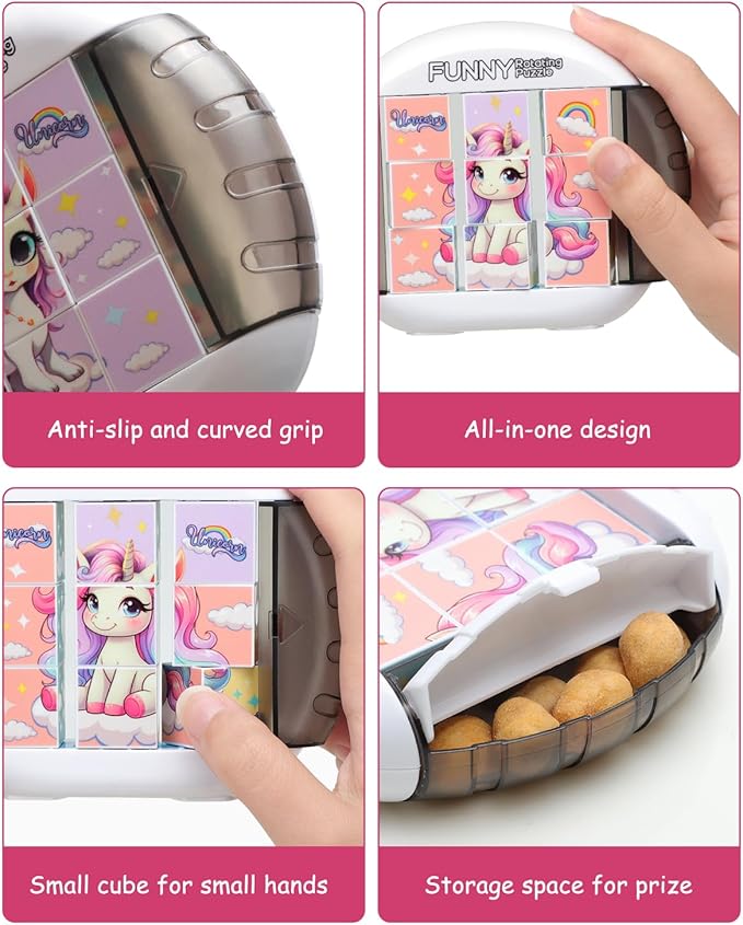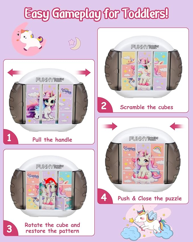 Rotating 3D Puzzle for Kids 3 4 5 6 7 Year Old, 4 Puzzles in 1, Handheld Game Fidget Toys for Travel, Cars & Plane, Fine Motor Skills Developing (Magical Unicorn Squad)