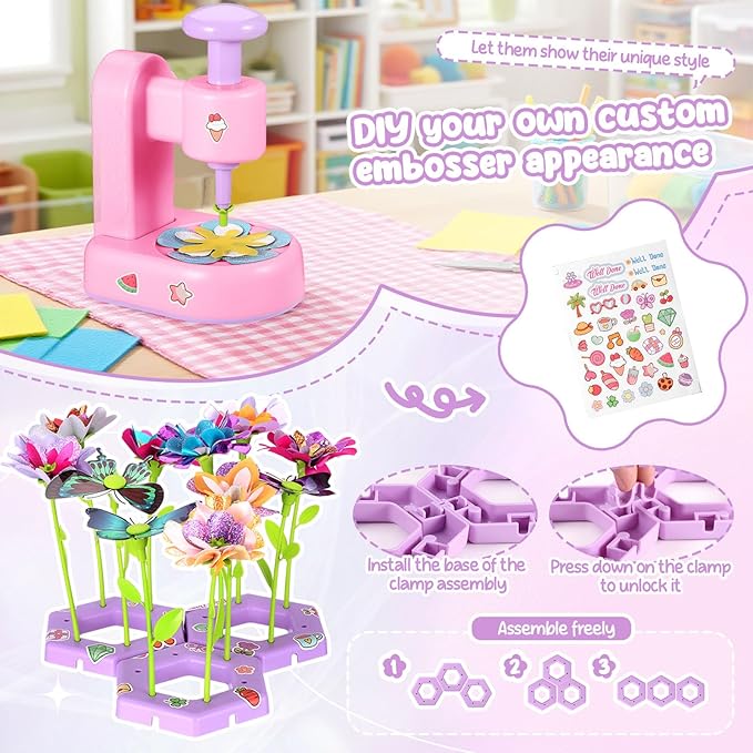 - All-Inclusive Fabric Flower Bouquets Toys Kit: This flower Craft kit includes all you need to start creating: a flower press machine, colorful petals, buds, stems (short and long), flower arrangement bases, a drawstring bag, stickers, wrapping paper, a ribbon roll, and more! It's the complete set for designing, building, and wrapping beautiful bouquets—unleash your child's inner florist