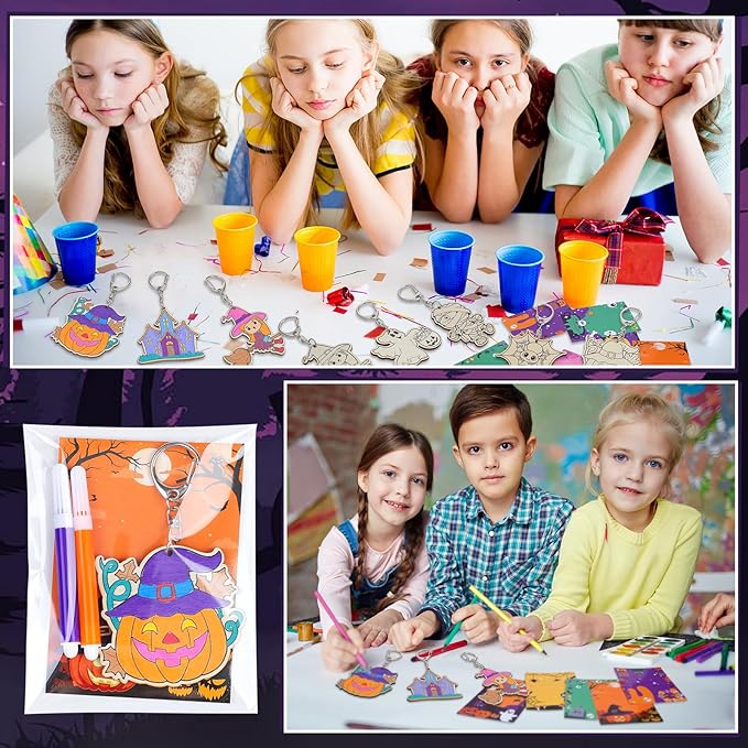 - Included Components : 24 x Halloween cards, 24 x Halloween unfinished wooden keychains, 24 x Opp bags, 96 x Watercolor brushes 24 x Halloween cards, 24 x Halloween unfinished wooden keychains, 24 x Opp bags, 96 x Watercolor brushes