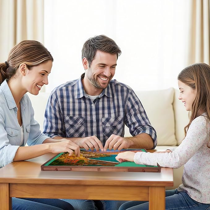 - 【Premium Sturdy Wood】 Our puzzle board is made from high quality hardwood and can hold up to 1,500 pieces.Each section has been finely sanded, exquisite craftsmanship, smooth and non-slip surface.The entire puzzle board is free of sharp edges and small parts.This puzzle board is designed to meet the needs of puzzle lovers and enhance the overall experience of puzzle-solving with friends and family.