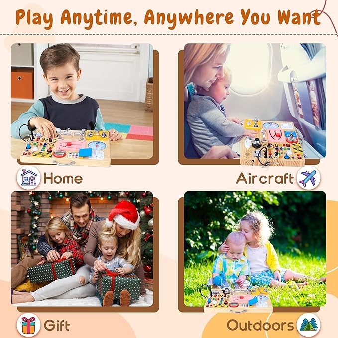- The Perfect Gift for 1 2 3 Year Old Boys & Girls: Searching for a unique and educational gift? This wooden sensory board is the answer! It comes in a beautiful packaging, ready to be the highlight at birthdays, holidays, or as a special surprise. It’s more than a toy; it's a tool for growth and discovery for every curious child.
