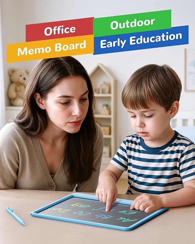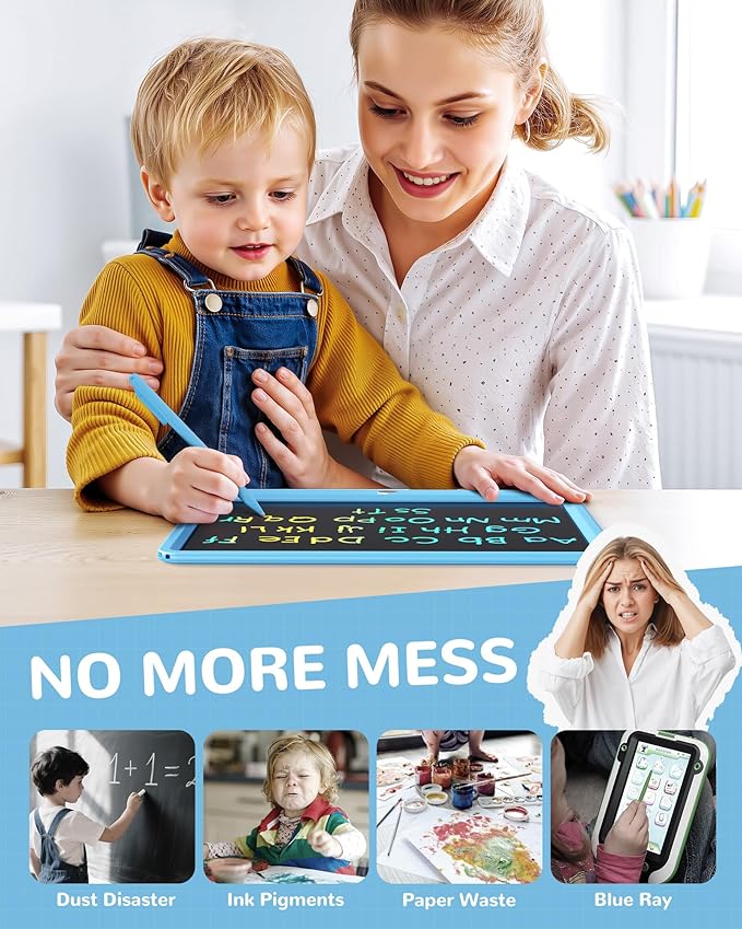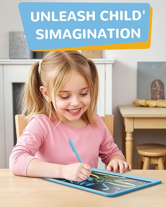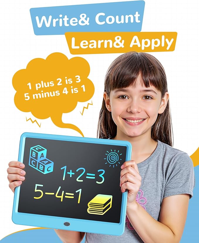 KOKODI LCD Writing Tablet, 12 Inch Colorful Toddler Doodle Board Drawing Tablet, Erasable Reusable Electronic Drawing Pads, Educational and Learning Toy for 3-6 Years Old Boy and Girls(Blue)