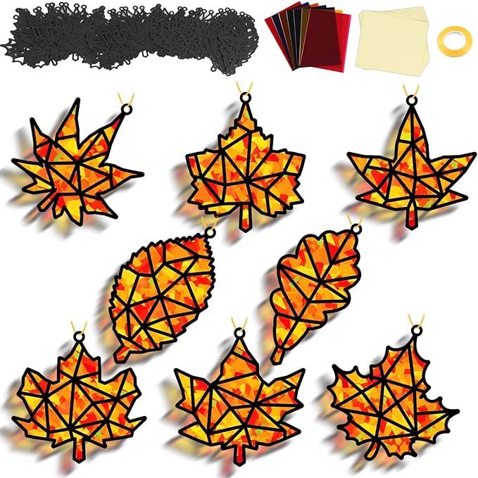 - Wide application: Beyond fun, these fall maple leaf stained glass window art kit pieces double as charming fall maple leaf window art classroom decor. Great for home school activities, family craft nights, Thanksgiving,or autumn parties, they work as autumn maple leaf art hanging ornaments hanging from windows, walls, or trees to infuse any space with warm, seasonal spirit