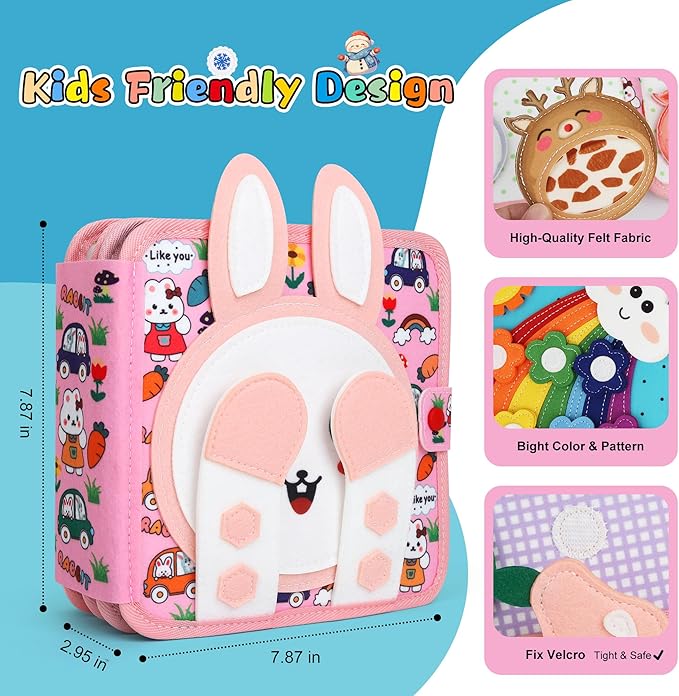 - Montessori-Inspired Bunny Adventure: Spark your toddler's imagination with this adorable bunny-themed busy book. Its soft felt pages, seasonal landscapes, and charming animals provide a sensory-rich experience that blends play with foundational learning principles for ages 1-3.