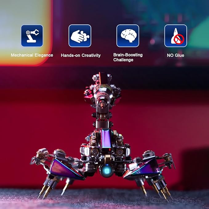 - [Craft Your Own Sci-Fi Marvel – 556 Pieces] Dive into the world of futuristic design with this advanced 3D metal puzzle. Featuring 556 finely crafted parts and a glowing LED core, the Rage Scorpion brings science fiction into your hands. A perfect challenge for puzzle lovers, creators, and makers aged 14+.