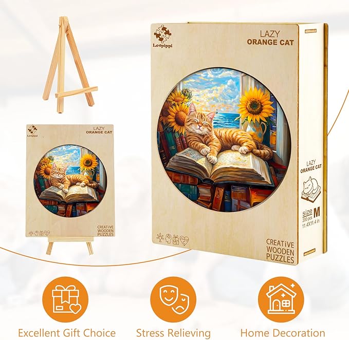 - [Wooden Jigsaw Puzzles for Adults Kids] - This lazy orange cat shaped jigsaw puzzle is made of high quality natural wood, safe and durable. The wooden puzzle is a colorful puzzle with clear and vibrant images that won't fade over time. Advanced laser cutting technology gives the adult puzzles very smooth edges and a very comfortable feel, protecting your hands from injury.