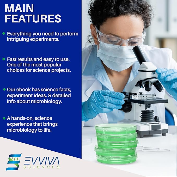 - RELIABLE & SECURE: Experience the height of science with our kit. These agar plates include a thick agar layer, and they are ready to use for your experiment. The customized packaging are more durable than conventional solutions. This kit was created for educational purposes for ages 15 and older.
