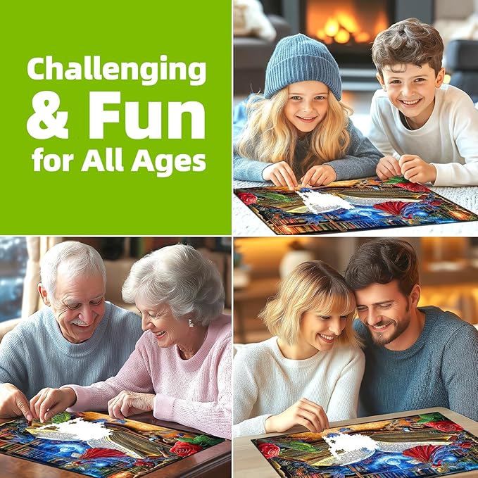 - Large 27.5x19.7 Inch Size: Enjoy the details on a grand scale! The large puzzle size ensures every magic spell, book spine, and rose petal stands out—perfect for “large puzzles for adults” and wall decor.
