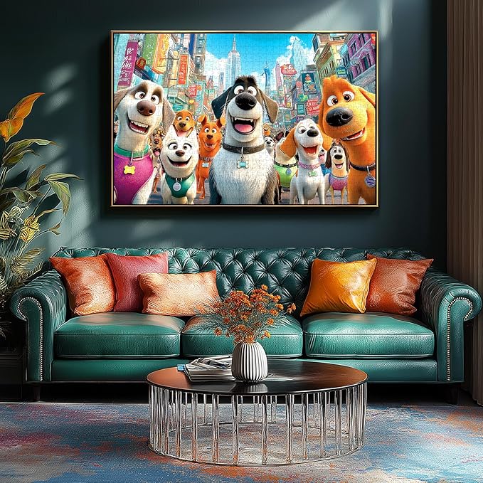 - 【Adorable Cartoon Dog Theme】: Dive into a vibrant city filled with cute, expressive cartoon dogs—each with playful faces and unique collars. Perfect for funny puzzles for adults and dog lovers, this 1000 piece puzzle for adults turns every piece into a moment of joy