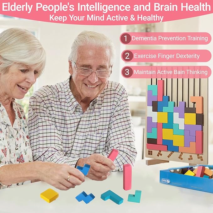 - Family Brain Teaser Activity: Wooden stacking blocks set Contains 10 double-sided challenge cards to guide you in creative games. You can rebuild patterns or create new patterns to improve concentration. It can be used as a Montessori toy or a mindfulness stress relief activity for adults.