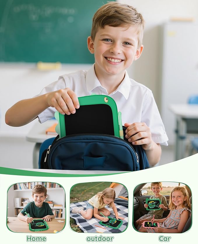 - โ Toddler Travel Essential Toys &Portable: Dinosaur is one the best attractive things for little boys, our newest dinosaur LCD writing tablet will be an excellent playmate. Toddlers can freely enjoy painting and doodling without messing with walls or floors. Lightweight and convenient to carry. The scribble drawing board will keep your girls excited and engaged for hours. What a great alternative to electronics!