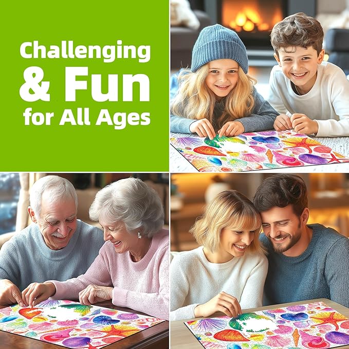 - ๐ผ Stunning Display & Practical Design: As adult puzzles 500 pieces and 500 large piece puzzles for adults, it measures 23x15 inches (58cmX38cm) when doneโframe it as decor or enjoy the vibrant watercolor seashell (not an animal puzzle, but coastal-themed) artwork. It also comes with a reference poster; skip it for an extra test of skill with this large puzzles for adults.
